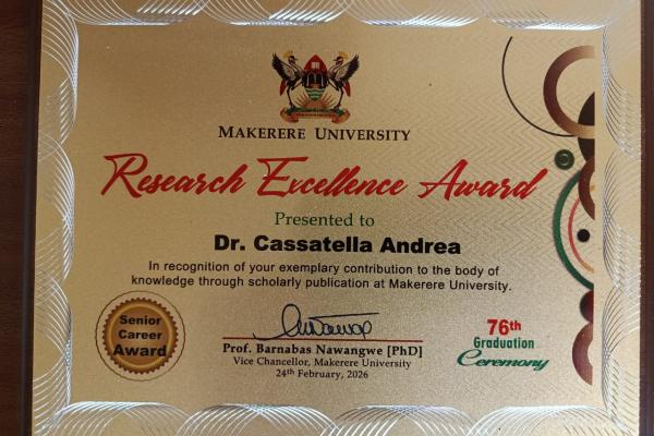 Dr. Andrea Cassatella Receives Research Excellence Award 25 February, 2026 We are pleased to share the exciting news that our Senior Research Fellow, Dr. Andrea Cassatella, has been awarded the Research Excellence Award at the 76th Graduation Ceremony of Makerere University.